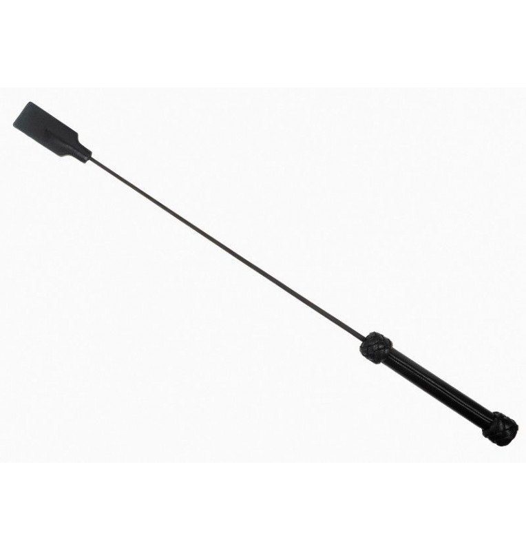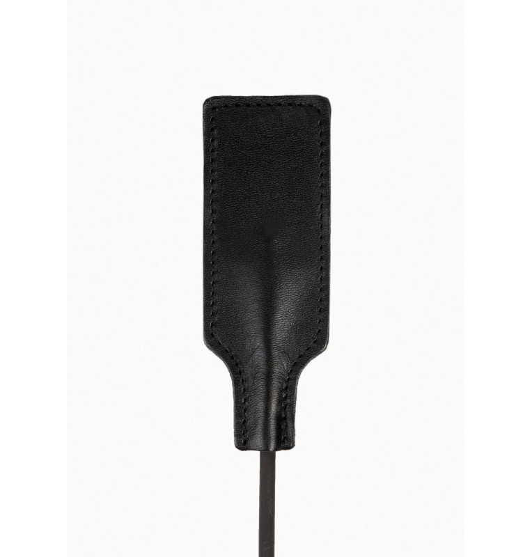 Хлесткий и изящный стек, который берет начало с лошадиных дерби, послужит прекрасным дополнением к образу строгой, но в тоже время элегантной госпожи в ролевом костюме или комплекте белья. Такая плеть, может быть использована как для легких, однако весьма ощутимых шлепков, вызывающих прилив крови к эрогенным зонам, так и для указания направления движения нижнего или его положения во время БДСМ-игр. Гладкая ручка декорирована по краям кожаным плетением. Основательная хлопушка стека изготовлена из натуральной кожи высокого качества. Хлопушку и рукоять соединяет длинный, упругий, но прочный хлыст. Ширина шлепка - 4 см.
