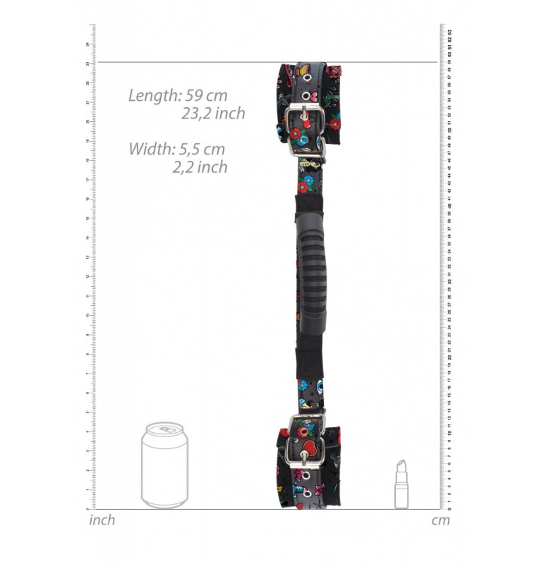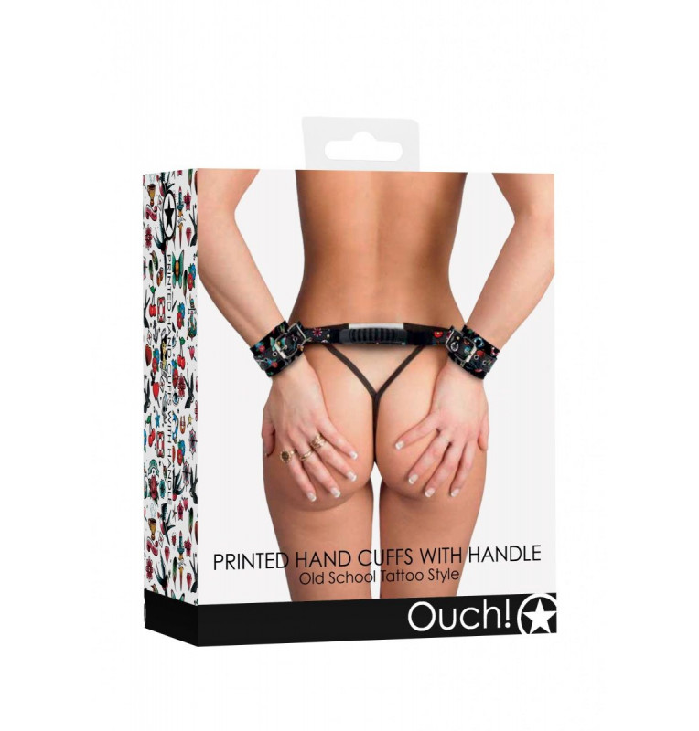 Printed Handcuffs Tattoo Style – выполненное в необычном стиле специализированное приспособление с фиксацией рук сзади для обездвиживания партнера при эротических ролевых играх и практиках БДСМ. Манжеты выполнены из мягкого и очень приятного к телу мягкого материала, что обеспечивает максимальный комфорт во время использования. Прочные кожаные ремни легко регулируются, позволяя идеально подобрать размер. Фурнитура изготовлена из металла. Наручники позволяют существенно ограничить свободу движения партнера. Они надеваются на запястья и фиксируются с помощью ремней. Ширина - 5,5 см.
