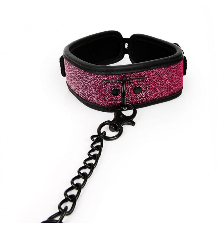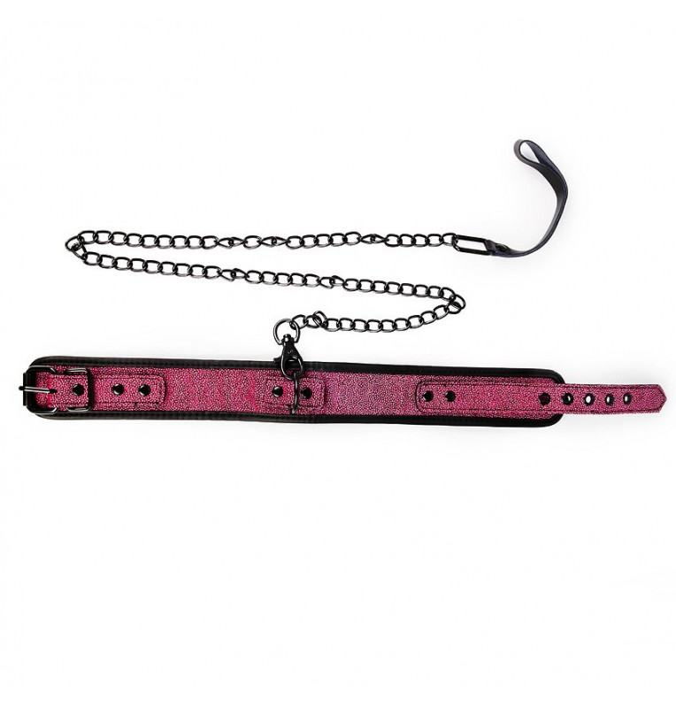 Черно-розовый ошейник с поводком-цепочкой