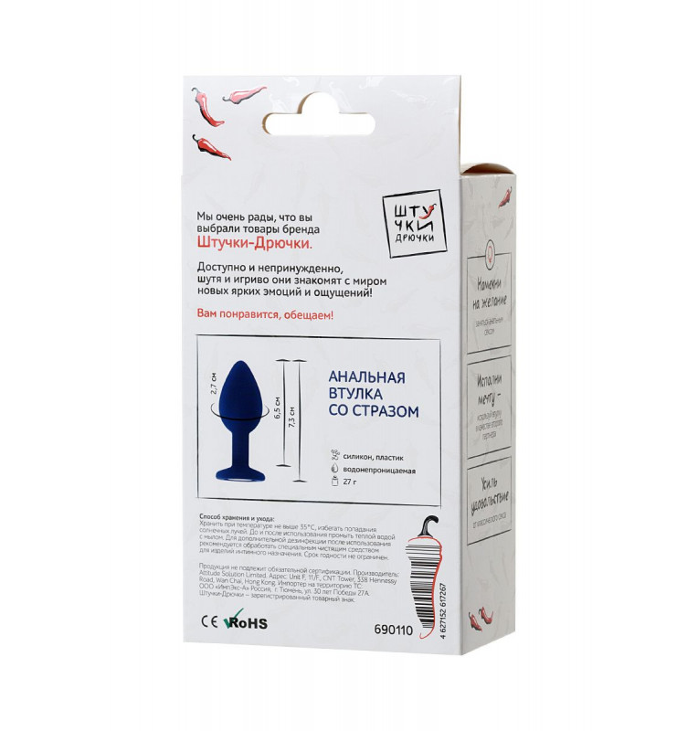 Штучка для другого входа. Подготовка к анальному сексу. Яркий аксессуар. Небольшой размер, нежный материал и каплевидная форма втулки позволяют ей уверенно, но деликатно превратить подготовку к анальному сексу в возбуждающую игру. А сияющий кристалл в основании сделает намек на другой секс очень соблазнительным. Втулка подойдёт даже самым-самым смущающимся и пугающимся новичкам - она обеспечивает комфортное проникновение и деликатную стимуляцию. Ни одна из обычных секс-игрушек не будет так дразняще смотреться во время прелюдии или секса. Рабочая длина - 6,5 см.