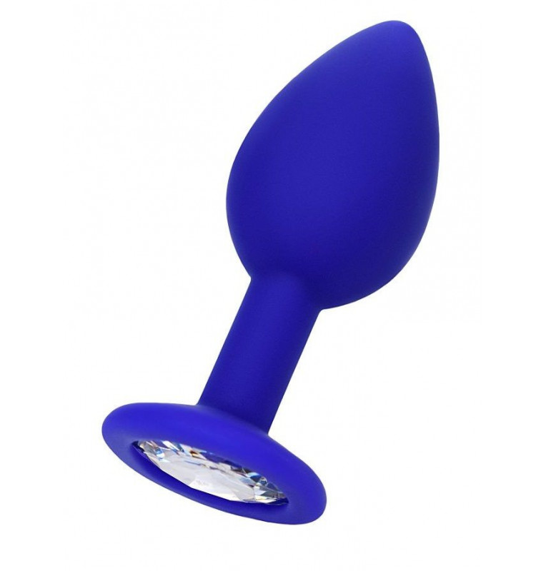 Синяя анальная пробка с прозрачным кристаллом - 7,3 см.