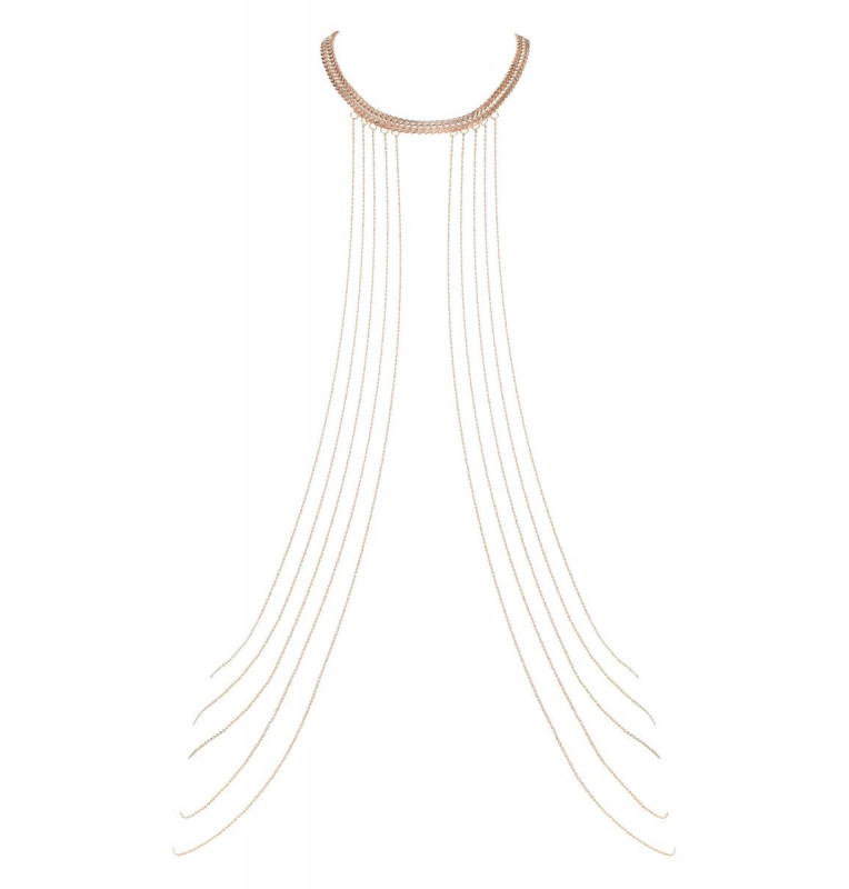 Уникальный и оригинальный аксессуар Bijou в виде золотистого украшения для тела. Изделие можно сочетать с одеждой, нижним бельем и надевать на голое тело. Длина регулируется при помощи многоступенчатой застежки.