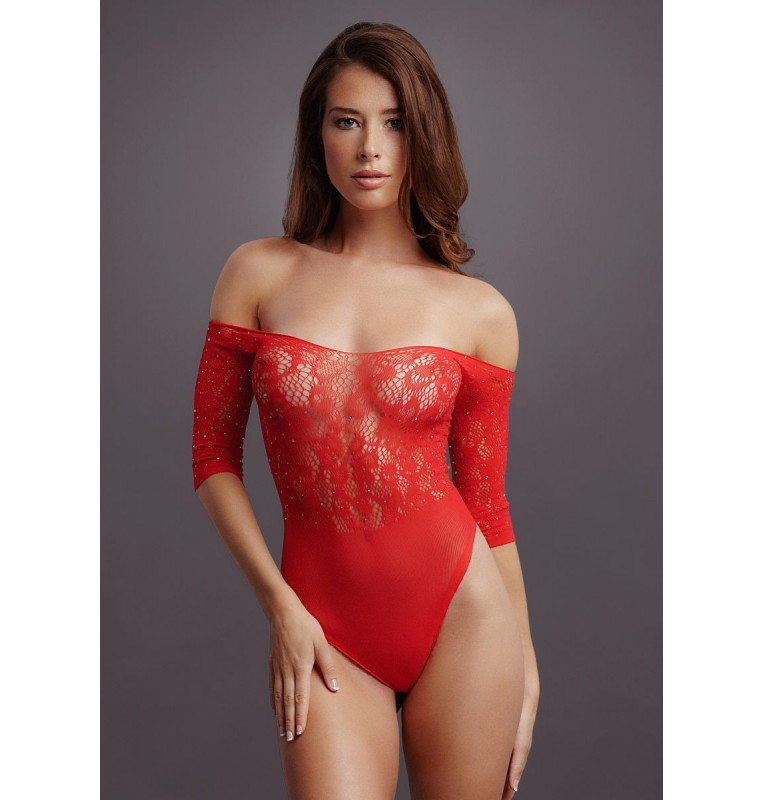 Crotchless Rhinestone Teddy - боди со спущенными рукавами 3/4. Дизайн сочетает ажурный рисунок плавно переходящий в сплошную непрозрачную ткань снизу, подчеркивающую плавные формы тела.