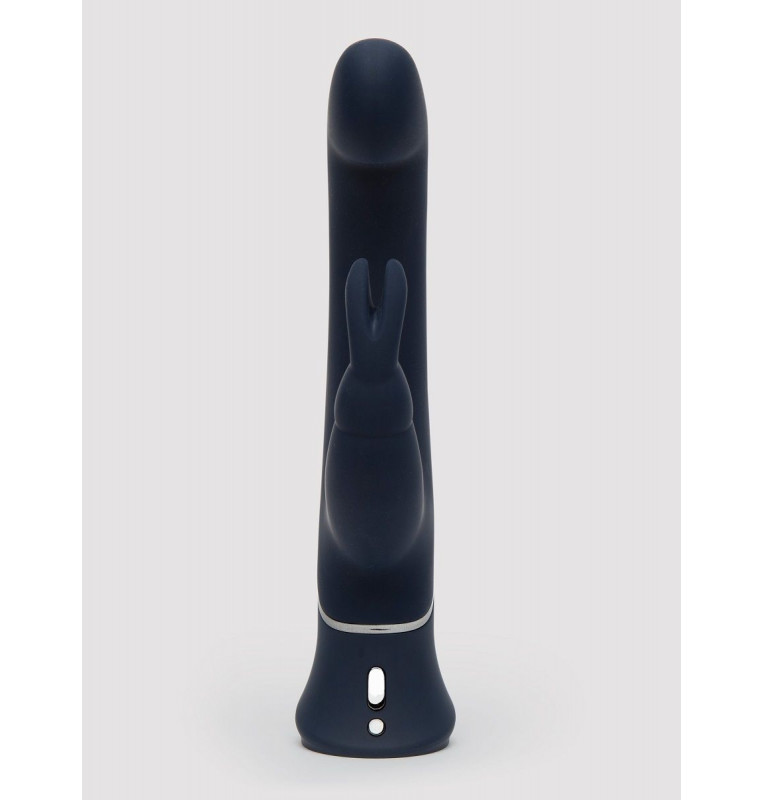 Темно-синий вибратор-кролик Greedy Girl Real-Feel Rabbit Vibrator. Головка чуть загнута для более точечной стимуляции лона. Клиторальный отросток с ушками подарит массаж клитора. 3 скорости и 9 режимов вибрации. Рабочая длина - 14 см.