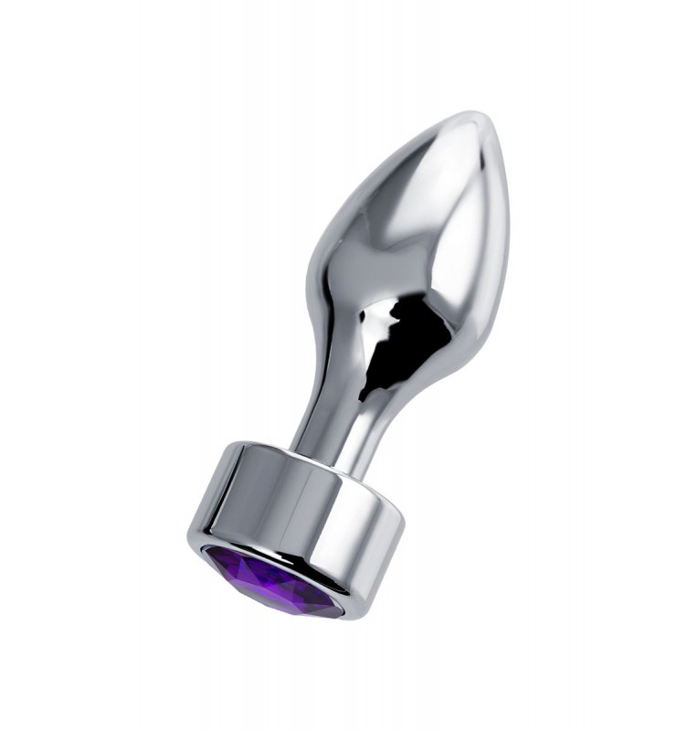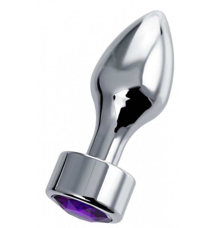 Серебристая анальная пробка с фиолетовым кристаллом - 9,5 см.