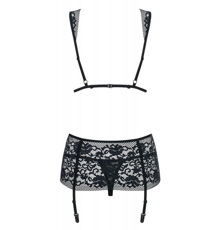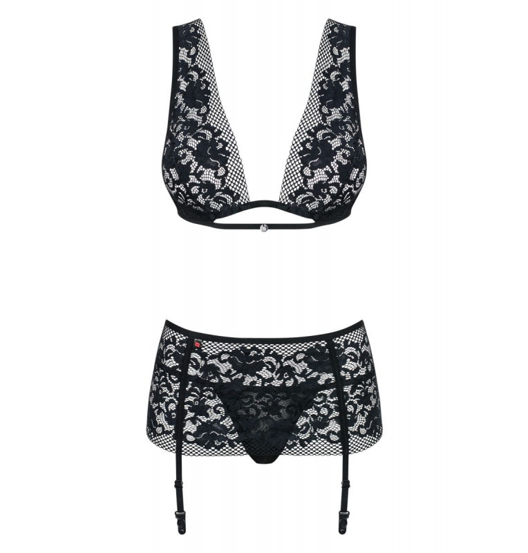 Роскошный кружевной комплект нижнего белья Figure состоит из бюстгальтера, стрингов и пояса для чулок. Бюстгальтер с мягкими чашками на косточках, на спинке удобная застежка, украшен очаровательным кулоном. Бретели и пажи регулируются по длине. Комплект упакован в красивую плотную коробку и отлично подойдет в качестве оригинального подарка. В комплекте: бюстгальтер, трусики-стринги, пояс для чулок.