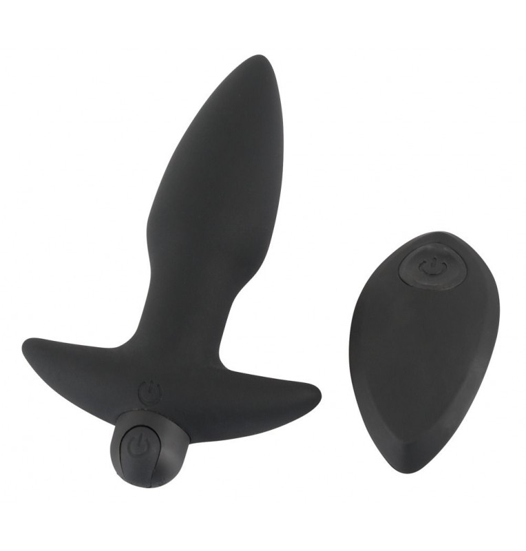 Черная анальная вибропробка с пультом ДУ Remote controlled Butt Plug - 13 см.