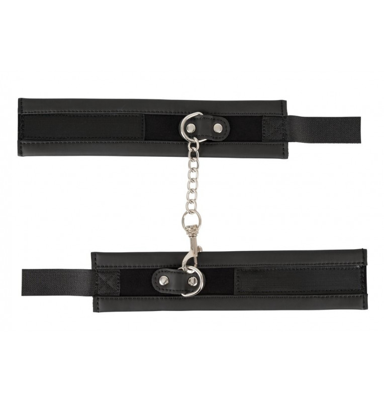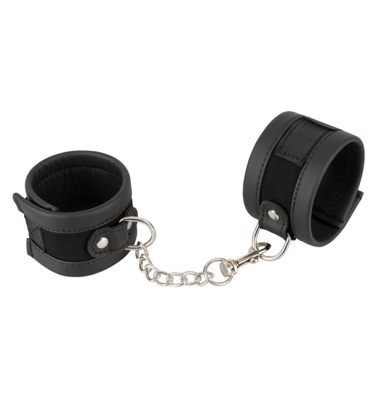 Черные наручники Handcuffs на липучках и цепочке. Снабжены отстегивающимся карабином.