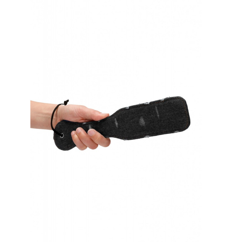 Джинсовая шлепалка Roughend Denim Style - ударный девайс для эротических ролевых игр и практик БДСМ. Он выполнен из джинсовой ткани с мягкой и прочной подкладкой. Ударная часть имеет прямоугольную форму, плавно перетекающую в рукоять с удобной петлей для фиксации изделия на запястье (темляк). Паддл чаще всего используется для шлепания по ягодицам – спанкинга для придания остроты сексуальным отношениям и получения новых ощущений. Ширина - 6 см.