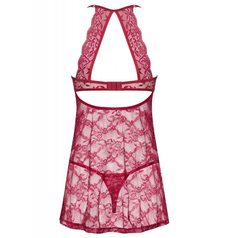 Потрясающий насыщенный цвет в сочетании с узорчатым кружевом и полупрозрачным материалом помогут подчеркнуть женское очарование. Короткий беби-долл выполнен из тонкого тюля с цветочным орнаментом. Мягкие чашечки на косточках с красивой кружевной окантовкой поддерживают грудь. Зоне декольте декорирована тонкими тесемками и тремя белыми жемчужинками. Геометрические вырезы и кружево украшают спинку. Бретели регулируются по длине, сзади застежка на несколько рядов крючков. Расклешенный подол кокетливо прикрывает ягодицы. Трусики-стринги входят в комплект. В комплекте: сорочка, трусики-стринги.
