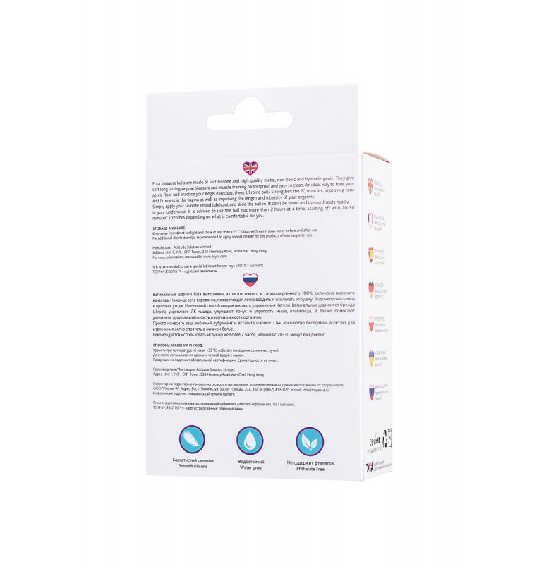 Вагинальные шарики Futa выполнены из нетоксичного и гипоаллергенного 100% силикона высокого качества. На конце есть веревочка, позволяющая легко вводить и извлекать игрушку. Водонепроницаемы и просты в уходе. Идеальный способ попрактиковать упражнения Кегеля. Вагинальные шарики от бренда L’Eroina укрепляют ЛК-мышцы, улучшает тонус и упругость мышц влагалища, а также помогают увеличить продолжительность и интенсивность оргазмов. Просто нанесите ваш любимый лубрикант и вставьте шарики. Они абсолютно бесшумны, а петлю для извлечения легко спрятать в нижнем белье. Рекомендуется использовать игрушку не более 2 часов, начиная с 20-30 минут ежедневно. Рабочая длина - 6 см. Вес - 63 гр.