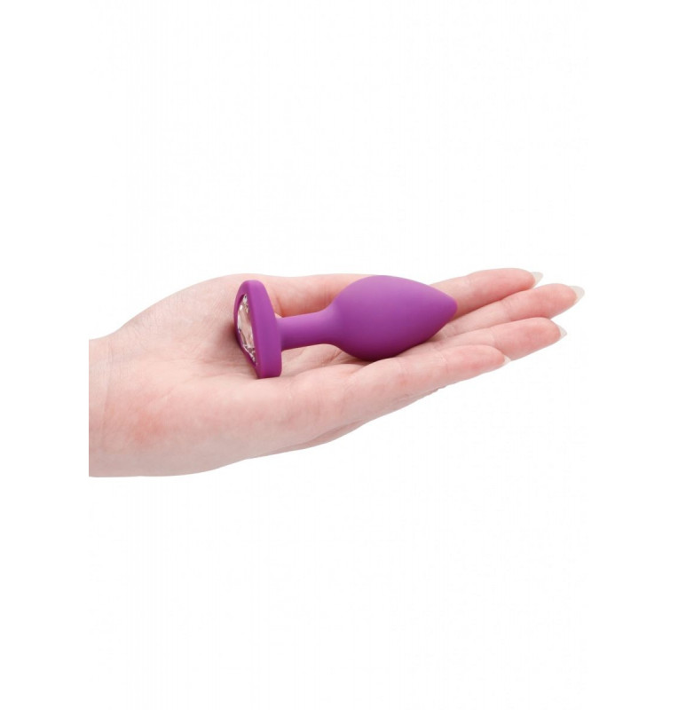 Фиолетовая анальная пробка с прозрачным стразом Large Ribbed Diamond Heart Plug - 8 см.