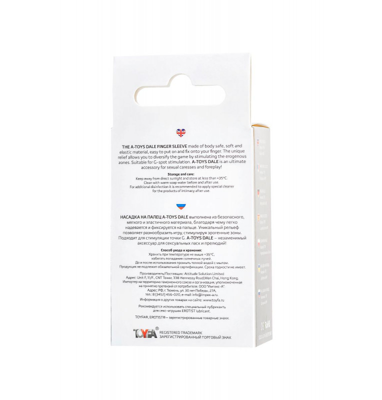 Насадка на палец A-Toys Dale выполнена из безопасного, мягкого и эластичного материала, благодаря чему легко надевается и фиксируется на пальце. Уникальный рельеф позволяет разнообразить игру, стимулируя эрогенные зоны. Подходит для стимуляции точки G. A-Toys Dale – незаменимый аксессуар для сексуальных ласк и прелюдий!