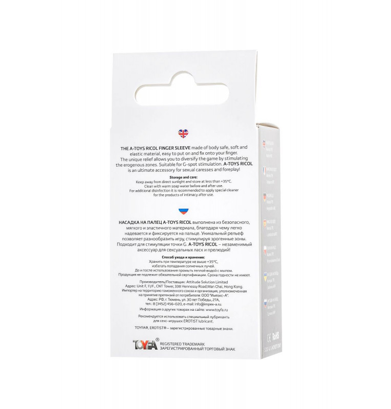 Насадка на палец A-Toys Ricol выполнена из безопасного, мягкого и эластичного материала, благодаря чему легко надевается и фиксируется на пальце. Уникальный рельеф позволяет разнообразить игру, стимулируя эрогенные зоны. Подходит для стимуляции точки G. A-Toys Ricol – незаменимый аксессуар для сексуальных ласк и прелюдий!