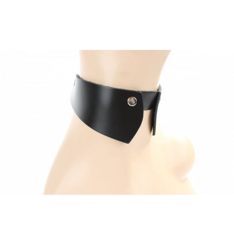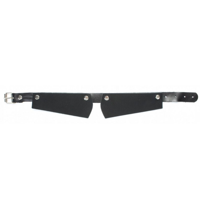 Чокер выполнен из натуральный гладкой кожи. Форма аксессуар напоминает воротничок. Декорирован заклепками впереди, регулируется пряжкой сзади. Стильный чокер подчеркнет вашу индивидуальность. Ширина ремешка - 2 см. Обхват - 29-39 см.