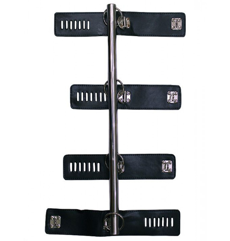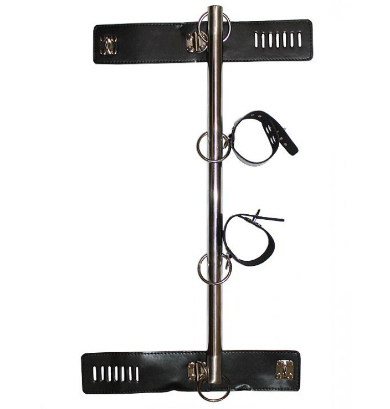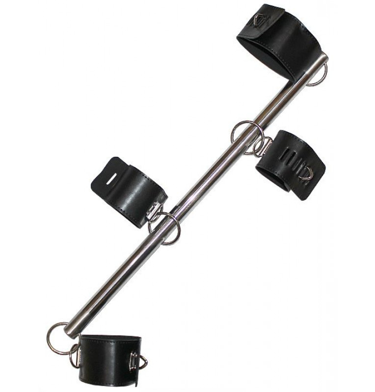 Распорка на ноги Eroticon — это Ваш помощник в реализации самой популярной позы Doggy. Распорка не нарушает кровообращение и обеспечивают надежную фиксацию с помощью замков. Длина распорки — 50 см. Ширина наручников и поножей — 5,5 см.