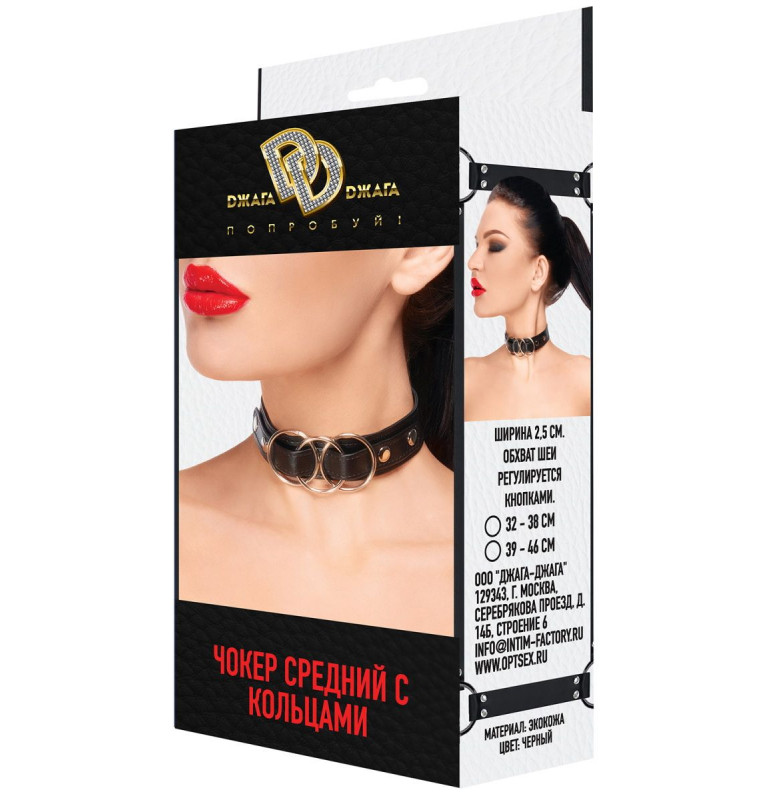 Короткий черный чокер с 3 кольцами