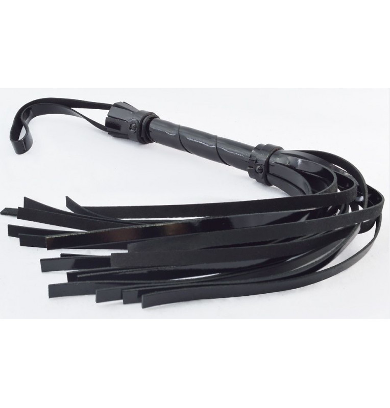Небольшая плеть изготовлена из натуральной лаковой кожи. Небольшая длина хвостовой части позволяет произвести качественную комфортную флогеляцию или нежные поглаживания. Ручка также обвита лаковой натуральной чёрной кожей. Дополнительный ремешок-петля, выходящий из рукояти, предназначен для удобства пользования и хранения. Количество хлыстов - 20-22 шт. Длина ручки - 10 см.
