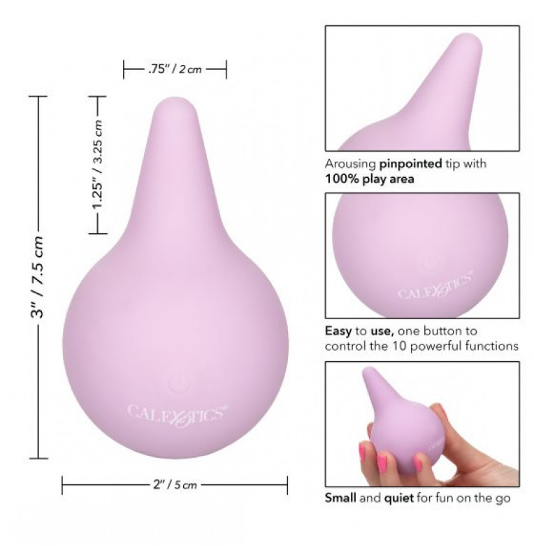 #ArouseMe – это миниатюрный точечный вибратор который подойдёт для стимуляции всех эрогенных зон на теле, округлая форма игрушки удобна сидит в руке, а тоненький кончик передаёт 10 функций мощнейшей вибрации. Вибромассажер изготовлен из ультра-мягкого силикона, обеспечивающего приятные и гарантированно безопасные тактильные ощущения. Очень гибкий корпус легко подстраивается под анатомию тела, доставляя удовольствие под любым углом воздействия. Игрушка имеет удобное управление с помощью всего одного нажатия. Чтобы включить или выключить игрушку, необходимо нажать и в течение трех секунд удерживать кнопку питания. Вибромассажер заряжается через USB и может быть подключен практически в любом месте, просто подсоедините идущий в комплекте шнур к совместимому порту компьютера или USB-адаптера (приобретается отдельно), а противоположный конец со штекером к игрушке. Полная зарядка занимает 1,5 часа, ее достаточно для беспрерывной работы до 70 минут. Минимальный диаметр - 2 см.