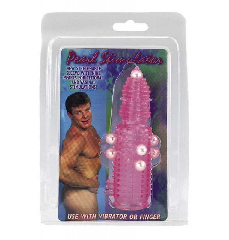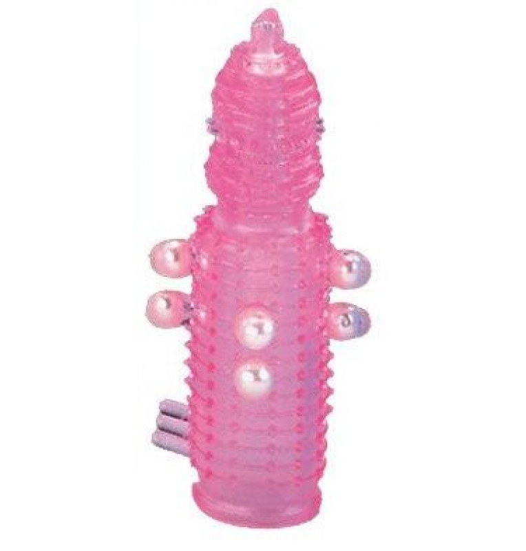 Розовая эластичная насадка на пенис с жемчужинами, точками и шипами Pearl Stimulator. Прирост длины - 3 см. Внутренний диаметр - 2 см.