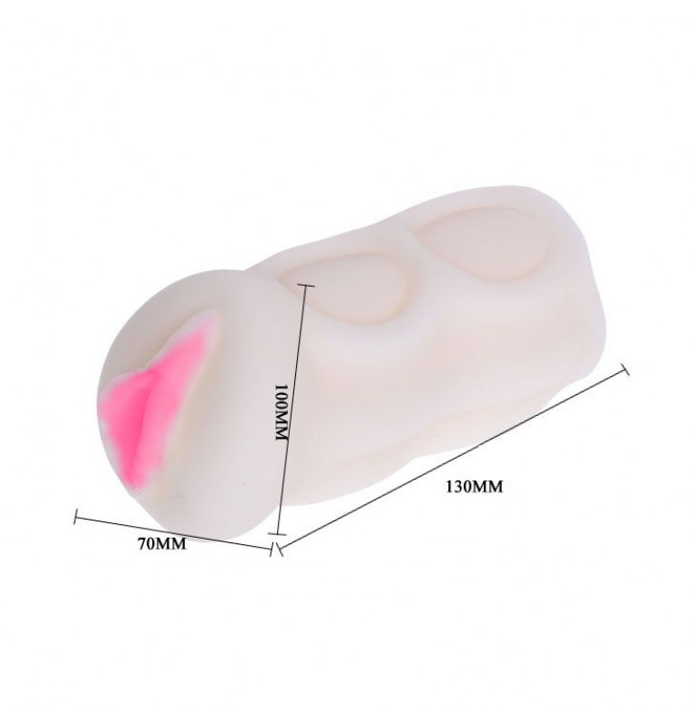 Компактный мастурбатор телесного цвета в виде вагины. Эластичный материал позволяет растянуть мастурбатор до нужного диаметра и испытать необычайные ощущения. Внутренняя часть имеет рельефную поверхность для интенсивной стимуляции. Наружная часть также имеет рельефную поверхность для большего удобства и исключения скольжения в руке. Нежный, очень податливый, с нежно-розовым цветом половых губ. Диаметр тоннеля в нерастянутом состоянии – 1 см.