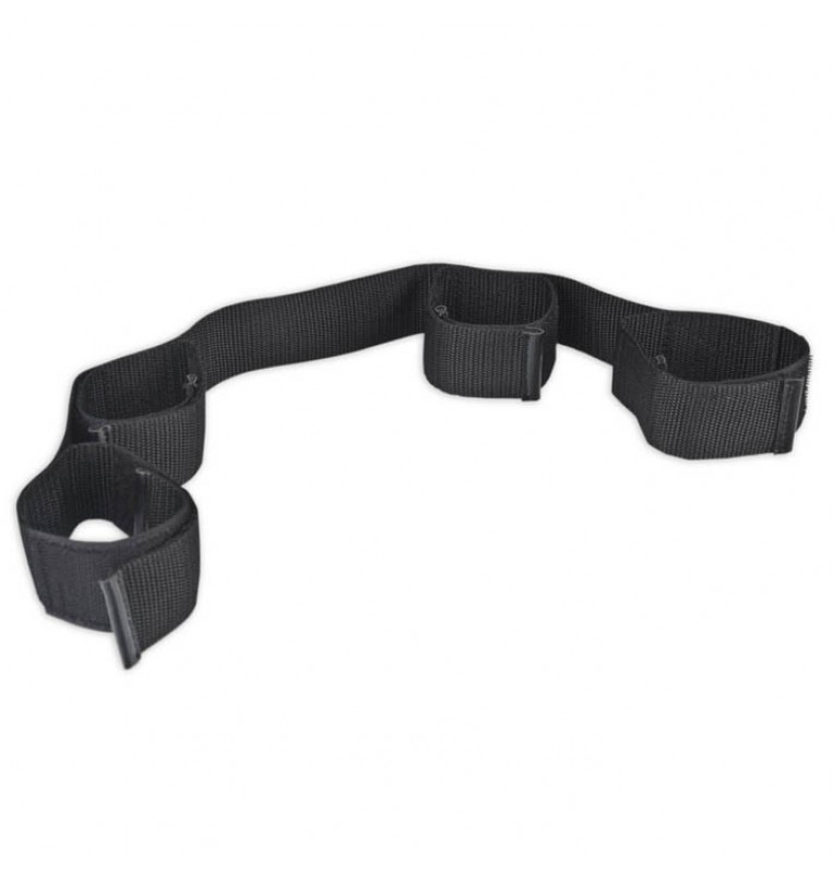 Фиксатор черного цвета, изготовленный из плотной черной корсажной ленты. По всей длине расположены фиксаторы для рук/запястий (2 шт) и лодыжек (2 шт) Их размер легко регулируется при помощи застежек-липучек. Ширина - 5 см.