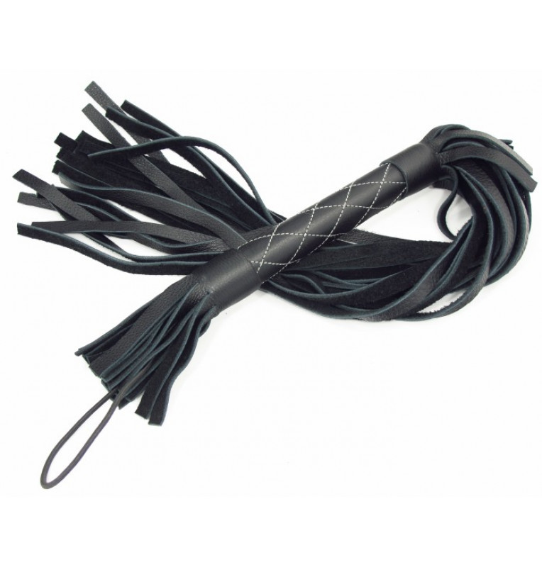Аккуратная черная плетка, изготовленная из натуральной кожи. Имеет жесткую ручку длиной 17 см, так же покрытую кожей. Имеется петля для удобного использования плети. Длина ручки - 17 см. Длина хлыстов - 42 см.
