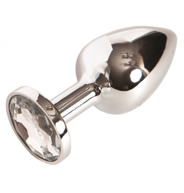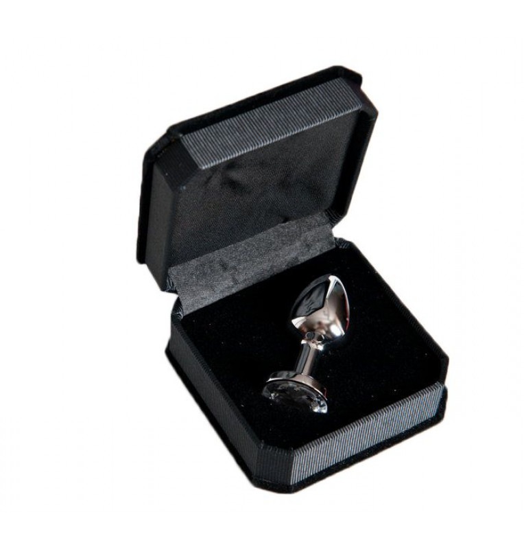 Малая серебристая анальная втулка с прозрачным кристаллом. Поставляется в подарочной упаковке.