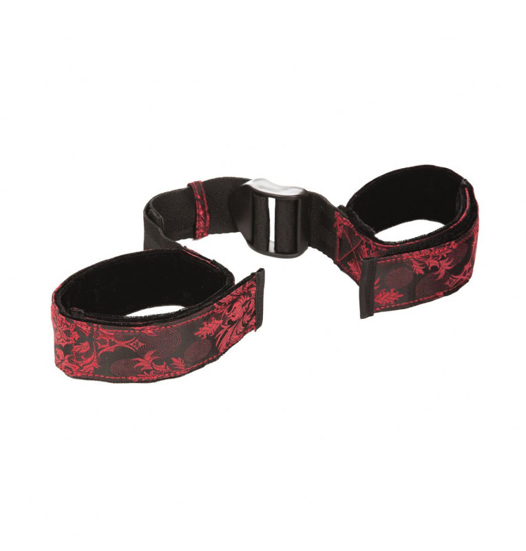 Фиксация на предплечья Scandal Bicep Restraint из чувственной премиум коллекции эротических аксессуаров Scandal. Фиксаторы на липучке с внутренней стороны отделаны приятным бархатистым материалом, исключающим нежелательный дискомфорт и раздражение кожи. С внешней стороны фиксаторы декорированы дизайнерским рисунком из блестящих красных нитей. Регулируются до 42 см.