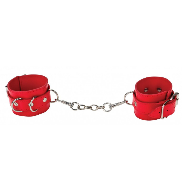 Оковы для рук из качественной кожи красного цвета для ролевых игр. Эти элегантные наручники удобные, долговечные, для смелых экспериментов в эротических играх с партнёром. Оковы для рук подходят для запястий и лодыжек ног. Размер наручников - до 25 см. в окружности.