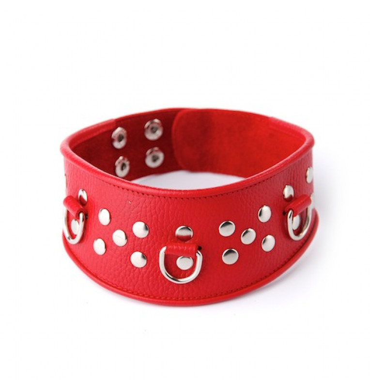 Изготовлен из натуральной кожи с велюровой подкладой. При изготовлении использована никелированная фурнитура. Размер универсальный. Один из основных атрибутов BDSM.