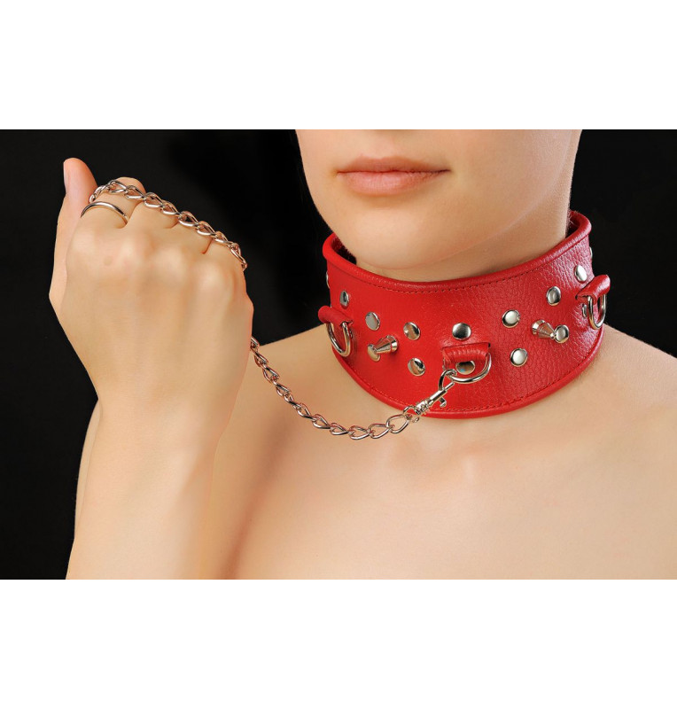 Красный кожаный ошейник с клёпками и шипами