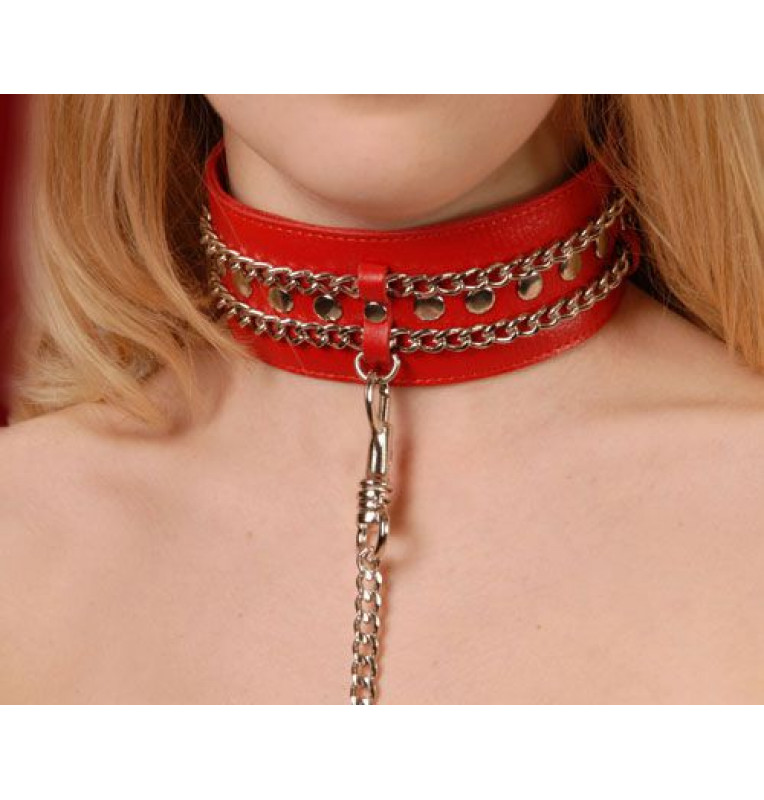 Красный ошейник с цепочками