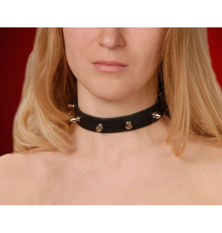 Изготовлен из натуральной кожи с велюровой подкладой. При изготовлении использована никелированная фурнитура. Размер универсальный, регулируется при помощи кнопок. Ширина - 2 см. Длина шипов - 1,2 см.