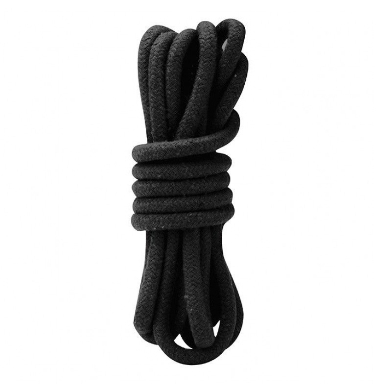 Черная веревка из хлопка для связывания партнера. Не содержит примесей, которые могут стать раздражителями кожи или повредить её. Длина вервки 3 метра, диаметр 8 мм.