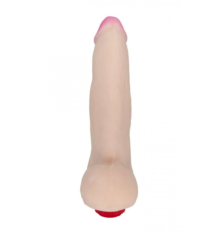 Телесный вибратор-реалистик с мошонкой - 23,7 см.