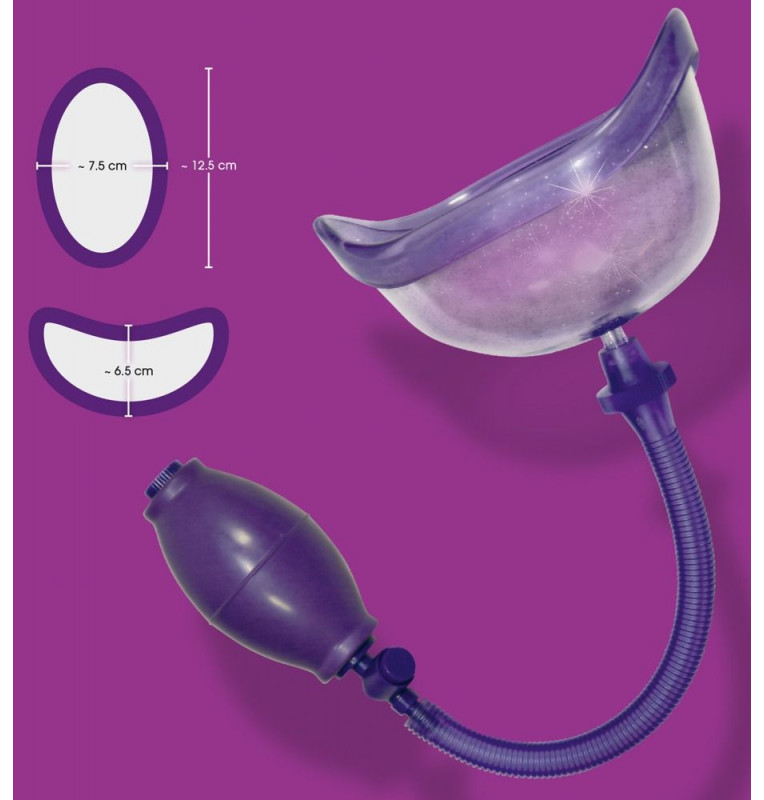 Женская вагинальная помпа. Предназначена для стимуляции половых губ (больших и малых), а также клитора. При постоянном использовании повышает чувствительность интимной зоны. При помощи клапана помпа быстро снимается с зоны половых органов. Размеры чаши - 12,5 х 7,5 х 6,5 см.