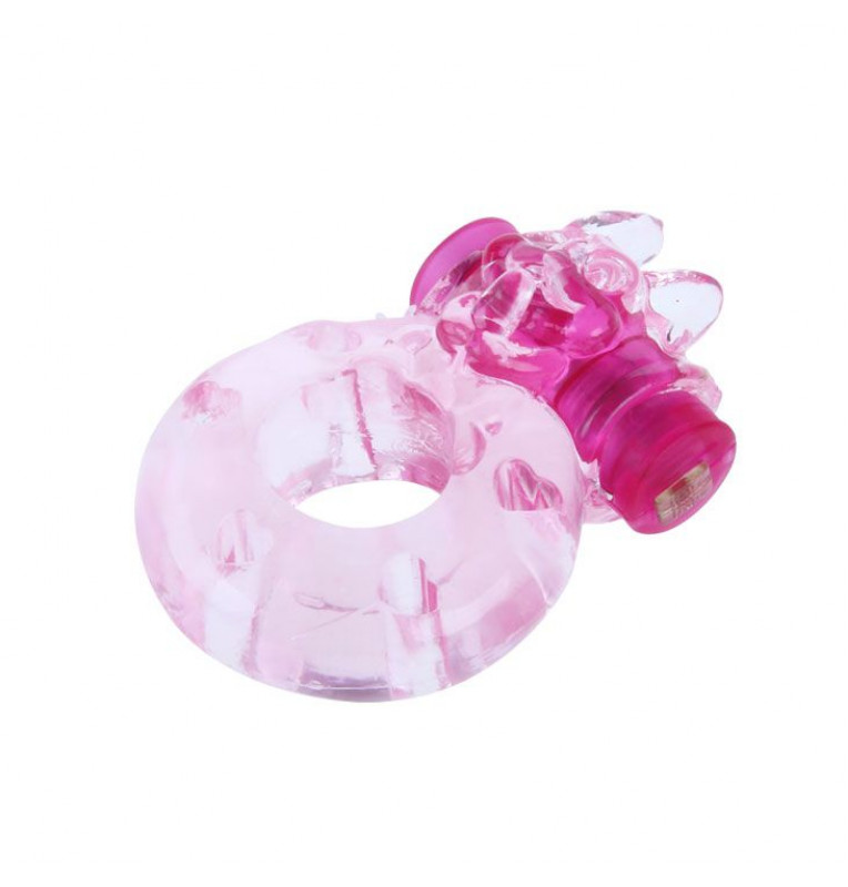 Розовое эрекционное виброкольцо с кошкой на вибропуле