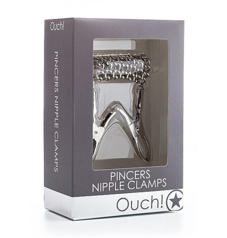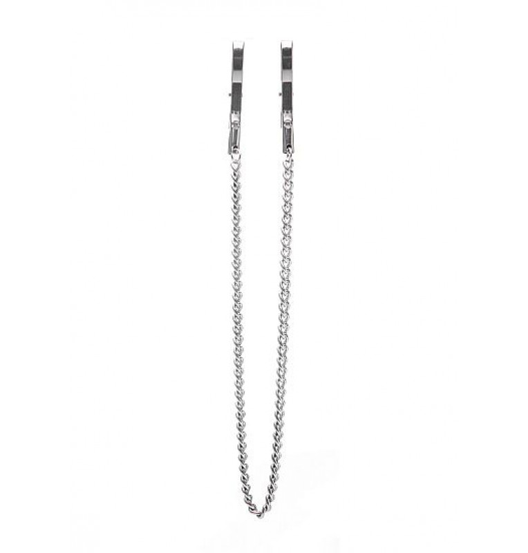 Серебристые металлические клипсы на соски с цепочкой