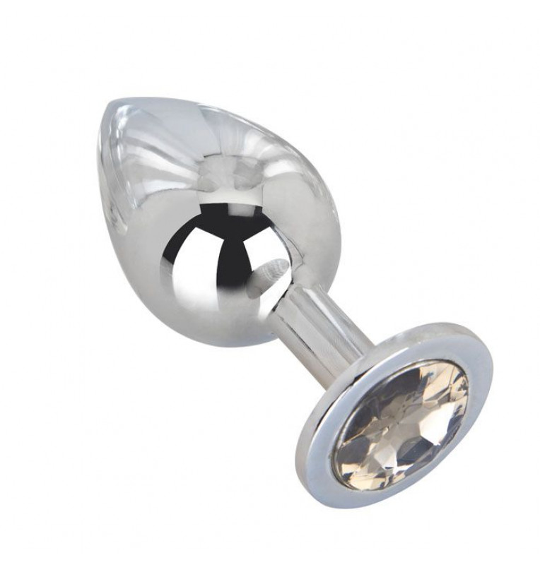 Гладкий большой плаг из отполированной до блеска стали с кристаллом серого цвета в основании. Металл - материал с большой теплопроводностью, сначала он будет прохладным, но быстро нагреется до температуры вашего тела. Стальные игрушки можно нагревать или охлаждать с помощью воды.