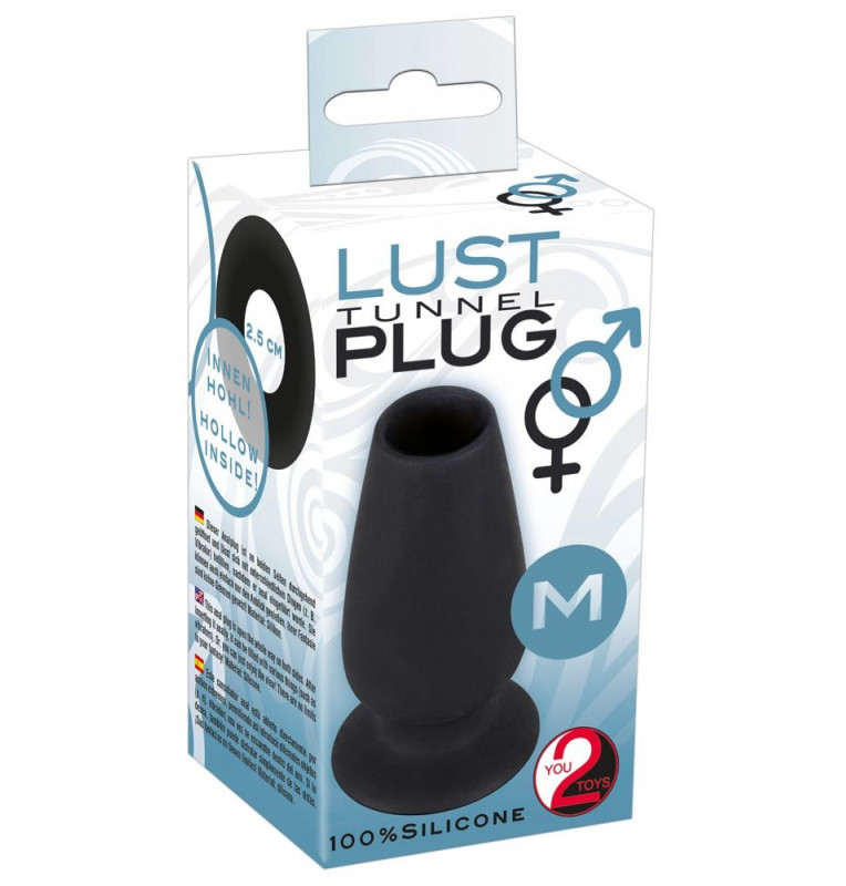 Чёрная анальная пробка-тоннель Lust Tunnel M - 10 см.
