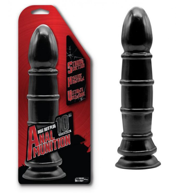 Чёрный анальный фаллоимитатор с рёбрышками - 25,4 см.