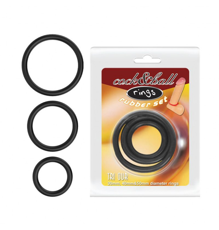 Набор из трёх эрекционных колец. Эти секс-игрушки выполнены из эластичного материала, прекрасно растягивающегося под любой размер пениса. Мужчина может использовать как одно кольцо, так и несколько сразу. Набор эрекционных колец обеспечит длительную и сильную эрекцию, а также значительно увеличит продолжительность полового акта. Внешний диаметр - 3, 4 и 5 см.