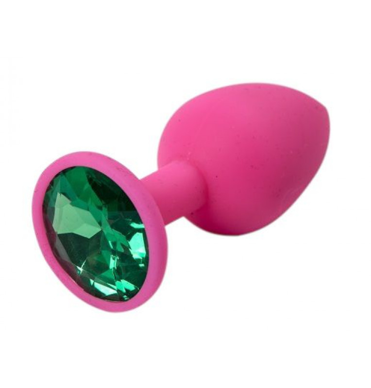 Розовая силиконовая пробка с зеленым кристаллом - 7,1 см.
