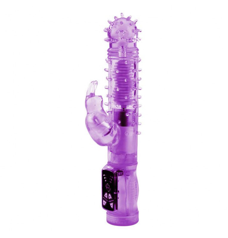 Гелевый вибратор с поступательными функциями, с клиторальным стимулятором в виде кролика. Многофункциональный: имеет 3 степени вибрации! Совершает вращательно-поступательные движения (вокруг своей оси и вверх-вниз).