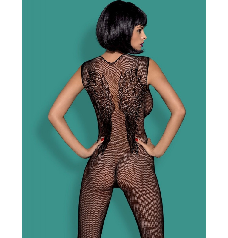 Этот обворожительный наряд с кружевным узором в области груди и животика подчеркнёт вашу сексуальность! Ну и, к слову, красоту вашего тела тоже. Уверены, ваш любимый сразу же заключит вас в объятия. И уж точно воспользуется доступом к зоне бикини через вырез между ножек. Сзади комбинезон украшен ажурными крылышками: вы ангел - это видно сразу!