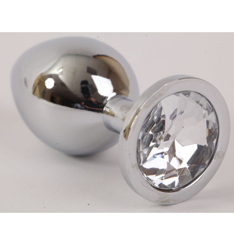 Серебристая анальная пробка с прозрачным стразом - 9,5 см.