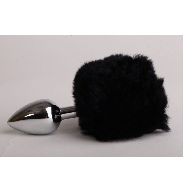 Серебристая анальная пробка c черным хвостом Задорный Кролик