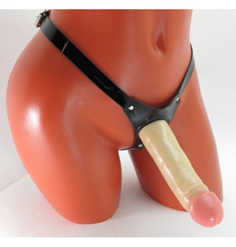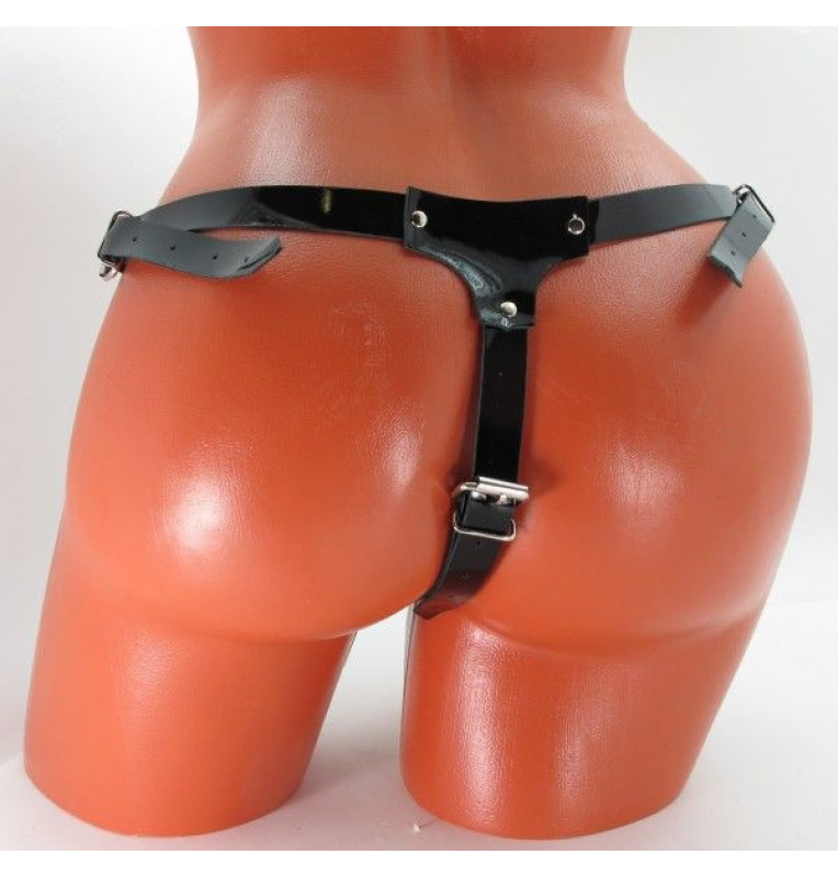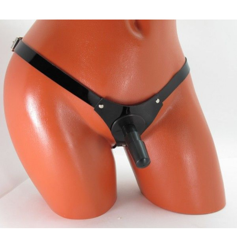 Черные кожаные трусики со штырьком.