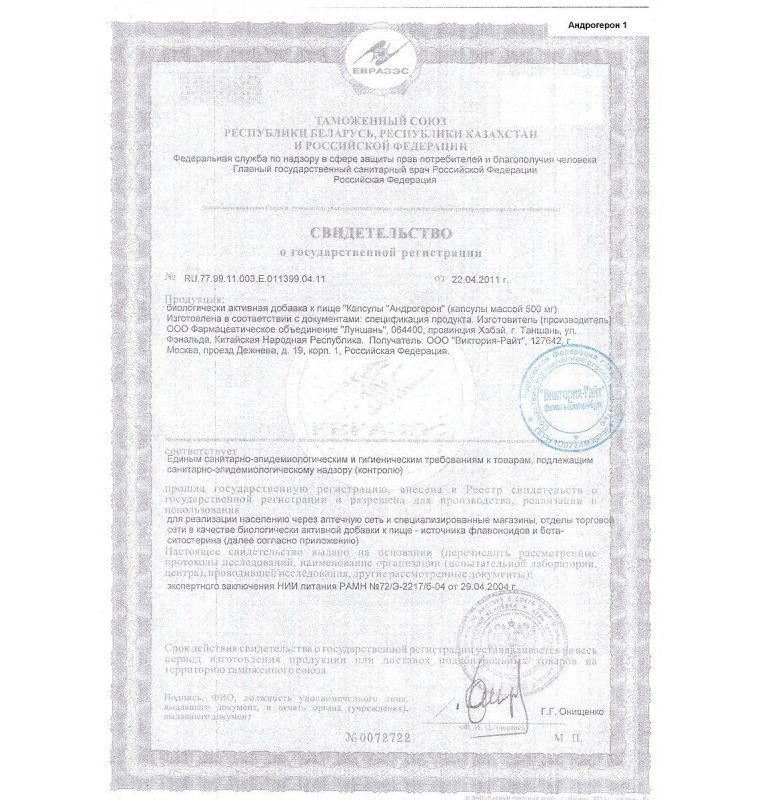 Андрогерон оказывает возбуждающий эффект, стимулирует кровообращение в сосудах полового органа, усиливает секрецию гормонов, посредством этого достигается быстрая и длительная эрекция. Содержит несколько десятков питательных элементов, активизирующих мужскую сексуальную энергию.   Дополнительное действие андрогерона: укрепляет сердце, улучшает работу кровеносной системы, питает клетки почек, успокаивает нервные окончания, увлажняет легкие, останавливает кашель, облегчает дыхание, положительный эффект при усталости. Препарат совместим с алкоголем. Преимущества капсул «Андрогерон»: 1. Быстрый эффект - обычно через 15-30 минут после применения проявляется эффект Скорость восстановления эрекции после применения капсул «Андрогерон» выше, чем после химических препаратов, эрекция протекает гораздо сильнее, а период возбужденного состояния особенно длителен. Капсулы «Андрогерон» также питают и укрепляют организм. 2. Растительный состав препарата питает и оздоравливает организм. Он не содержит гормонов, химических компонентов, не противопоказан людям, употребляющим алкоголь. Капсулы «Андрогерон» не дают побочных эффектов, безопасны и надежны, в то же время они содержат питательные вещества, укрепляют организм и повышают иммунитет, подходят для применения людям с различными заболеваниями. 3. Длительный эффект - препарат оказывает лечебное действие в течение 3 - 5 дней. Лечебное воздействие капсул «Андрогерон» мягкое и длительное, они лечат как симптомы, так и причину заболевания, полностью мобилизуют потенциальные возможности организма, приводя к ярким ощущениям. Однократное применение обеспечивает длительный эффект. 4. Капсулы «Андрогерон» являются примером совершенного сочетания тысячелетней традиции китайской медицины и достижений современных высоких технологий. 5. Капсулы «Андрогерон» отличаются приемлемой ценой, их стоимость в 3 раза ниже стоимости аналогичных химических препаратов.   Рекомендации по применению: рекомендуется в качестве БАД к пище, обладающей общеукрепляющим и мягким тонизирующим действием для мужчин. Препарат показан людям с пониженной потенцией и с преждевременной эякуляцией.   Противопоказания: индивидуальная непереносимость компонентов БАД, повышенная нервная возбудимость, бессонница, повышенное артериальное давление, нарушение ритма сердечной деятельности, выраженный атеросклероз, прием в вечернее время. Перед применением рекомендуется проконсультироваться с врачом. В упаковке 3 капсулы: 2 + 1 в подарок.